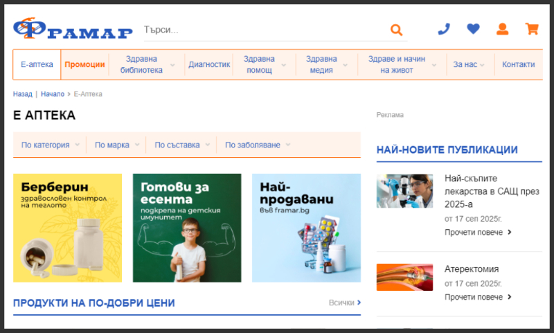 Реклама във www.framar.bg - Банер на първа страница на електронната аптека